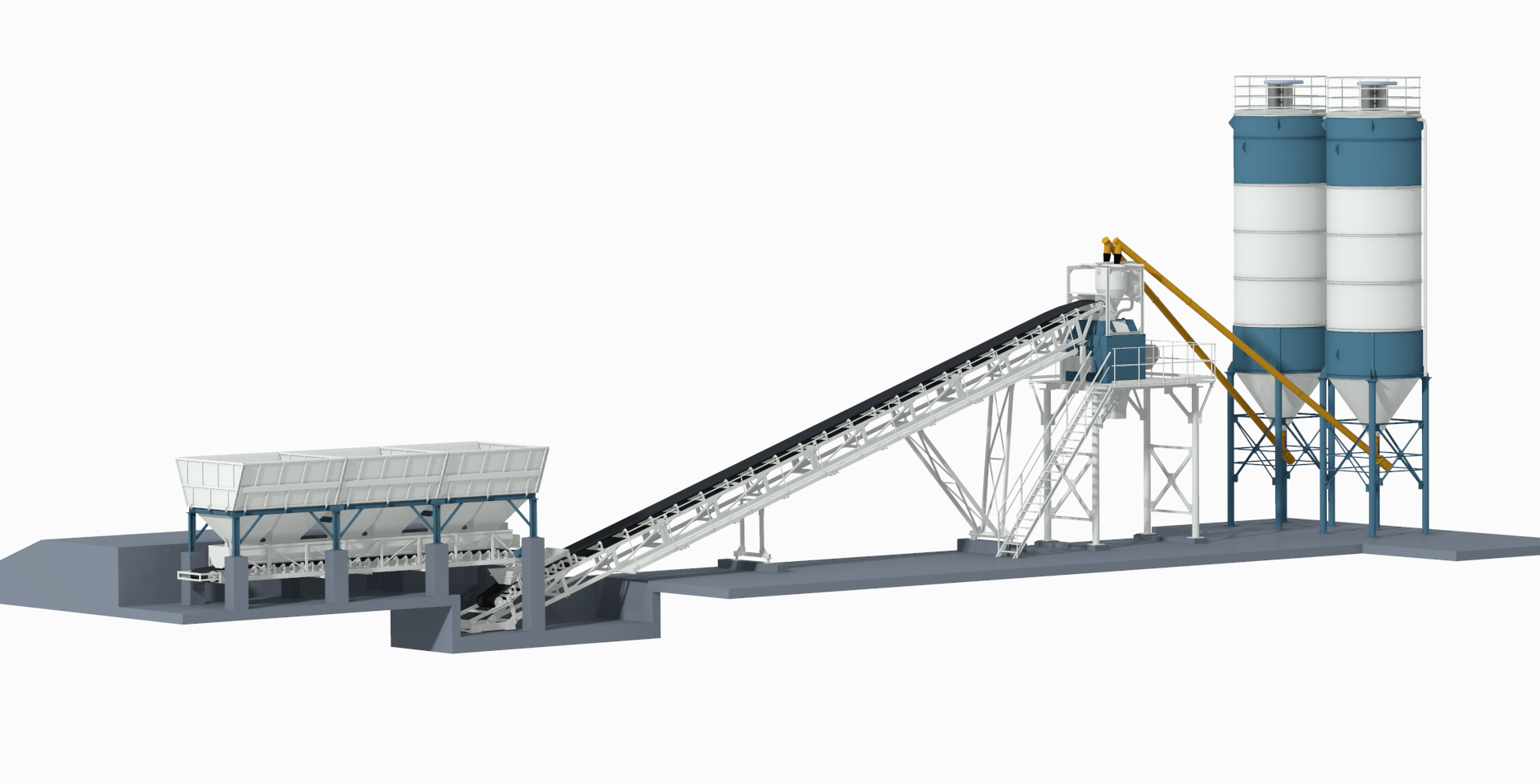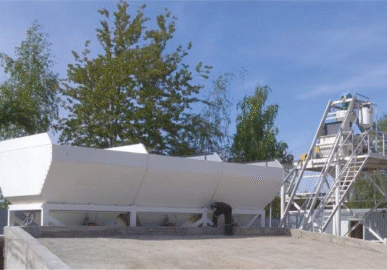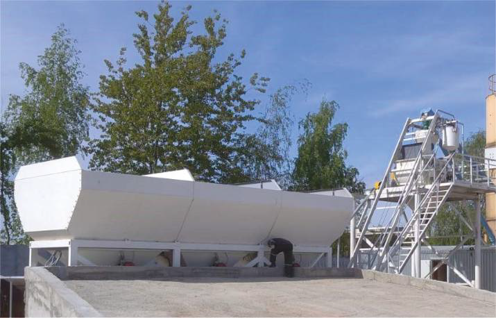 Объем бункеров инертных материалов составляет 3х14 м³, что позволяет иметь достаточный технологический запас для непрерывной работы бетонного завода БСУ BW MIX 45.