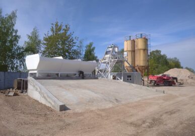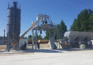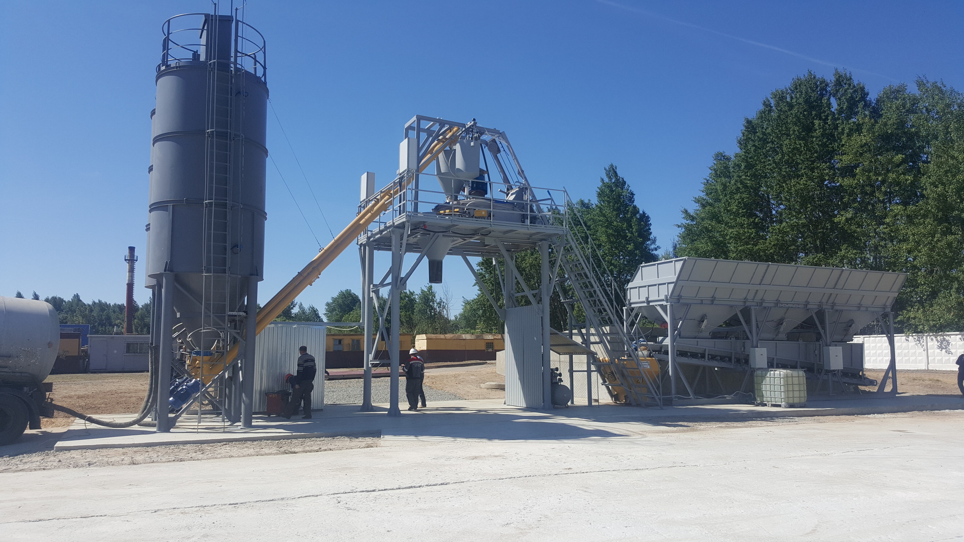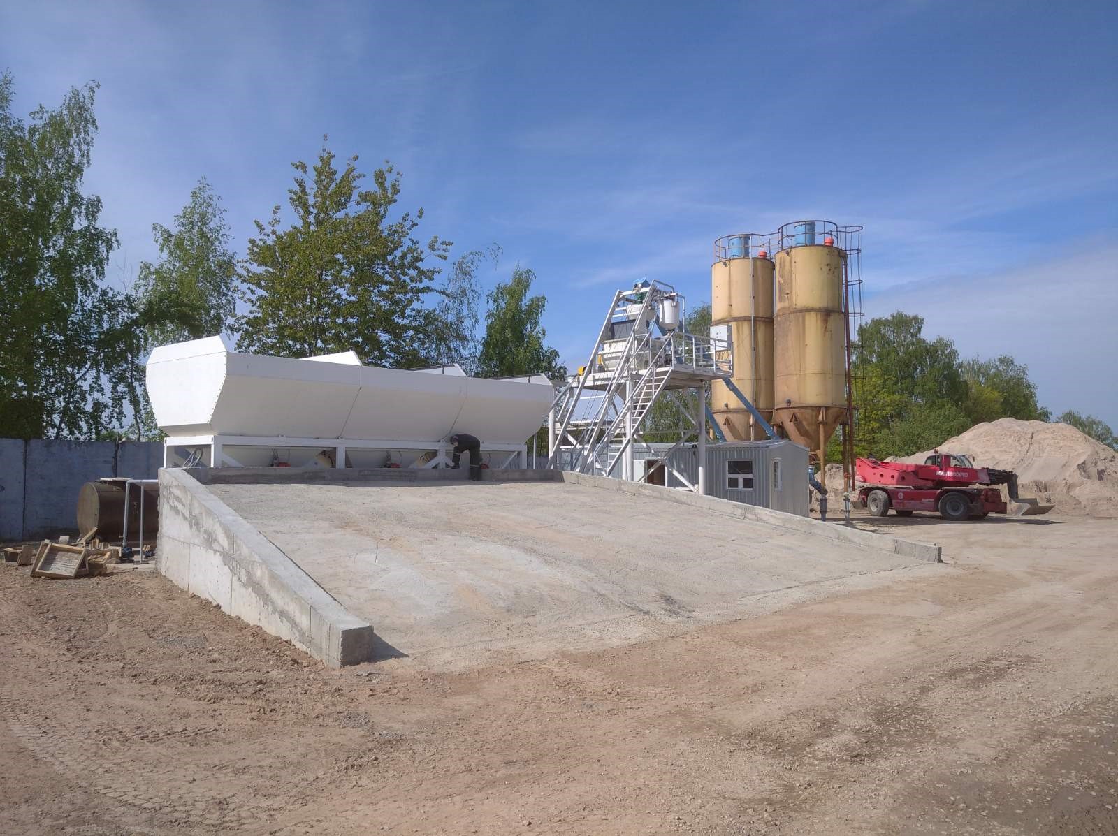 Перемешивание бетона в БСУ осуществляется двухвальным бетоносмесителем CHS 1250/750, установленным на эстакаде с высотой выгрузки готовой смеси 3,95 м. Этот бетонный завод предназначен для производства тяжелых и легких бетонов, строительных растворов и пенобетонов на производственных базах строительных организаций или на крупных строительных объектах.