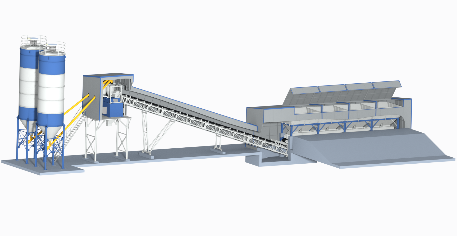 РБУ оснащена двухвальным горизонтальным бетоносмесителем CHS 20000 CONELE, который имеет объем загрузки/выгрузки 3000/2000 литров. Смесительные рычаги бетоносмесителя изготовлены из литого чугуна сфероидального профиля и прикреплены болтами к смесительным валам. Концы валов герметично уплотняются с помощью надежного аксиального уплотнения, которое предотвращает протекание раствора и увеличивает срок работы смесителя. Все уплотняющие элементы легко разбираются и меняются. Разгрузка бетонной смеси осуществляется с помощью гидравлической разгрузочной установки, которая является безопасной и надежной. Бетонный завод BW MIX 120 зимнего исполнения полностью автоматизирован. Автоматизированная система управления позволяет сохранять и накапливать статистическую информацию о работе установки, включая количество выполненных и отмененных заказов, ведение базы рецептов смесей, время отпуска заказов, расход материалов, аварийные остановки, время работы и другую информацию, необходимую для полного контроля работы установки. За счет автоматизации производства бетона достигается: