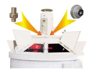 Система привода состоит из электродвигателя и специально разработанного редуктора CO-NELE (запатентовано). Улучшенная модель имеет более низкий уровень шума, более надежна и долговечна. Редуктор эффективно и равномерно распределяет мощность для каждого смесительного устройства в самых жестких производственных условиях.